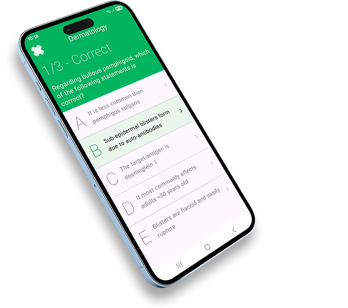 Pass medical finals faster with high-yield exam-style MCQs, all with detailed teaching and explanations.